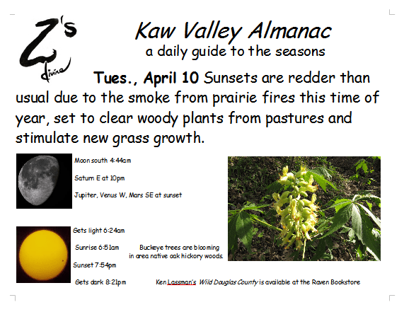 Ken Lassman has been keeping this almanac for over a decade, He invites you to share your observations and photos in the comments section. You can find his book Wild Douglas County at The Raven Bookstore in Lawrence.