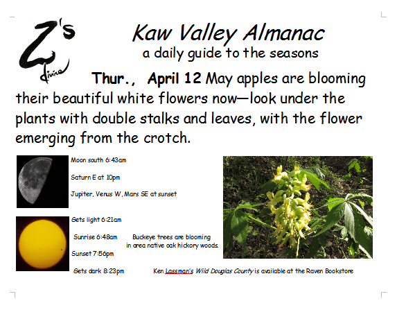 Ken Lassman has been keeping this almanac for over a decade, He invites you to share your observations and photos in the comments section. You can find his book Wild Douglas County at The Raven Bookstore in Lawrence.
