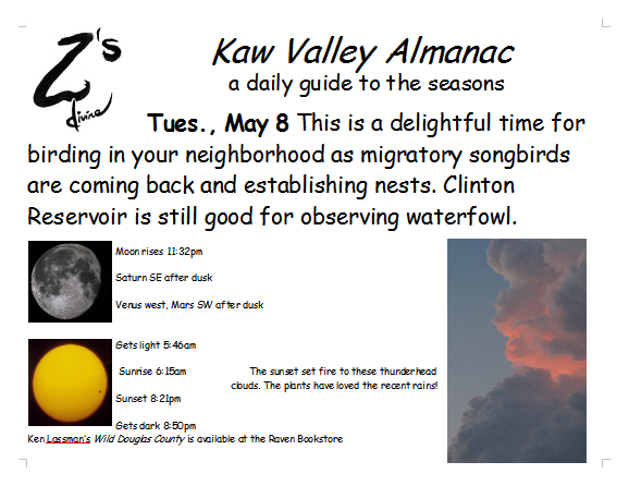 Ken Lassman has been keeping this almanac for over a decade, He invites you to share your observations and photos in the comments section. You can find his book Wild Douglas County at The Raven Bookstore in Lawrence.