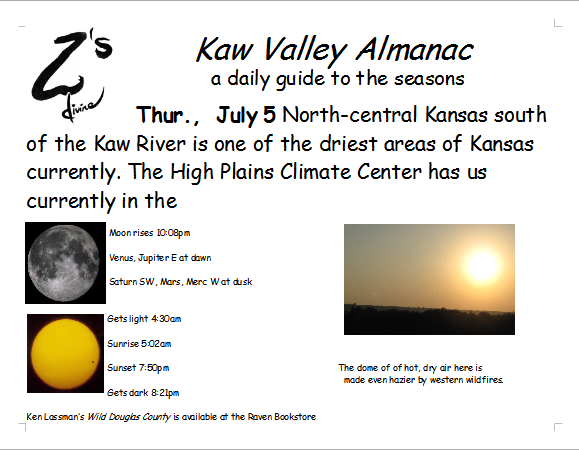 Ken Lassman has been keeping this almanac for over a decade, He invites you to share your observations and photos in the comments section. You can find his book Wild Douglas County at The Raven Bookstore in Lawrence.
