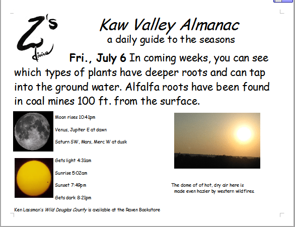 Ken Lassman has been keeping this almanac for over a decade, He invites you to share your observations and photos in the comments section. You can find his book Wild Douglas County at The Raven Bookstore in Lawrence.