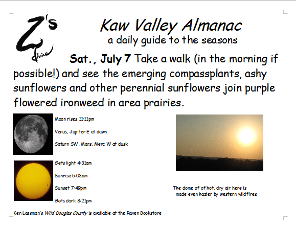 Ken Lassman has been keeping this almanac for over a decade, He invites you to share your observations and photos in the comments section. You can find his book Wild Douglas County at The Raven Bookstore in Lawrence.