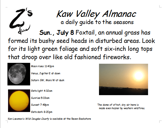 Ken Lassman has been keeping this almanac for over a decade, He invites you to share your observations and photos in the comments section. You can find his book Wild Douglas County at The Raven Bookstore in Lawrence.