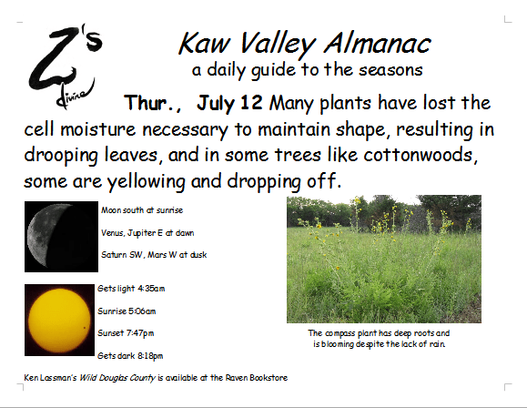 Ken Lassman has been keeping this almanac for over a decade, He invites you to share your observations and photos in the comments section. You can find his book Wild Douglas County at The Raven Bookstore in Lawrence.