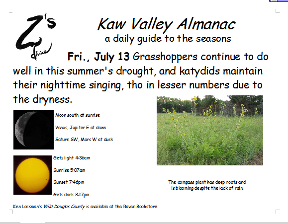 Ken Lassman has been keeping this almanac for over a decade, He invites you to share your observations and photos in the comments section. You can find his book Wild Douglas County at The Raven Bookstore in Lawrence.