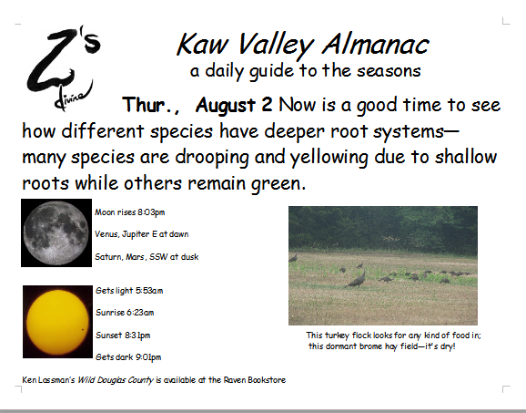 Ken Lassman has been keeping this almanac for over a decade, He invites you to share your observations and photos in the comments section. You can find his book Wild Douglas County at The Raven Bookstore in Lawrence.