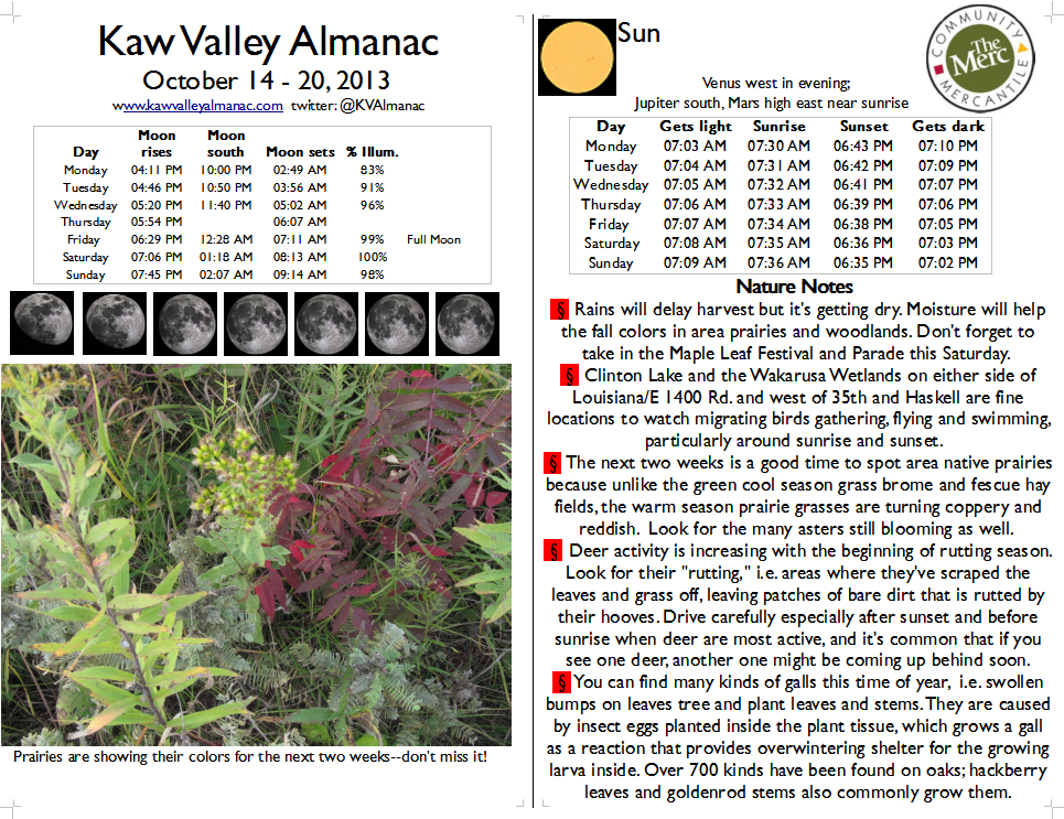 October 7 – 13, 2013 Kaw Valley Almanac