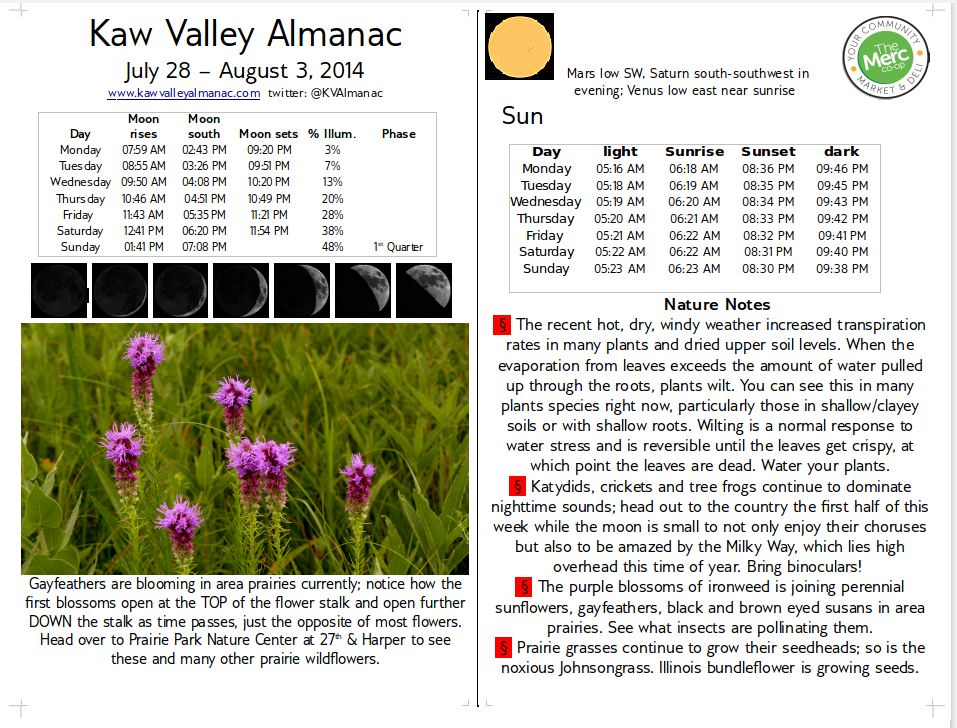 July 28 – August 3, 2014 Kaw Valley Almanac