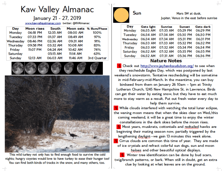 January 21 – 27, 2019 Kaw Valley Almanac