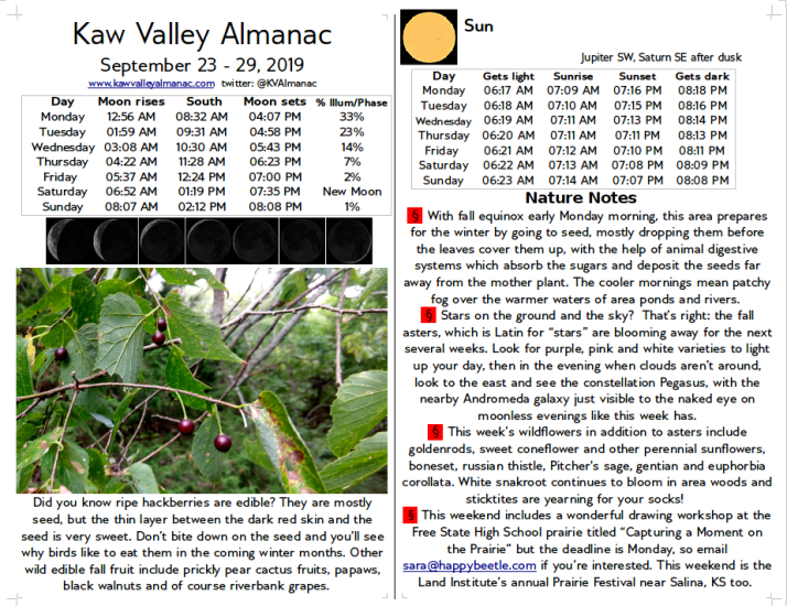 click here to download free .pdf of September 23, 2019 Kaw Valley Almanac