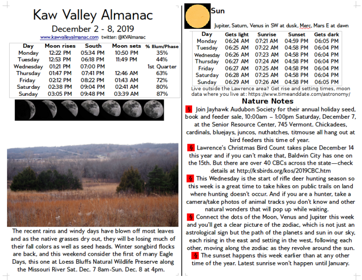 December 2 – 8, 2019 Kaw Valley Almanac