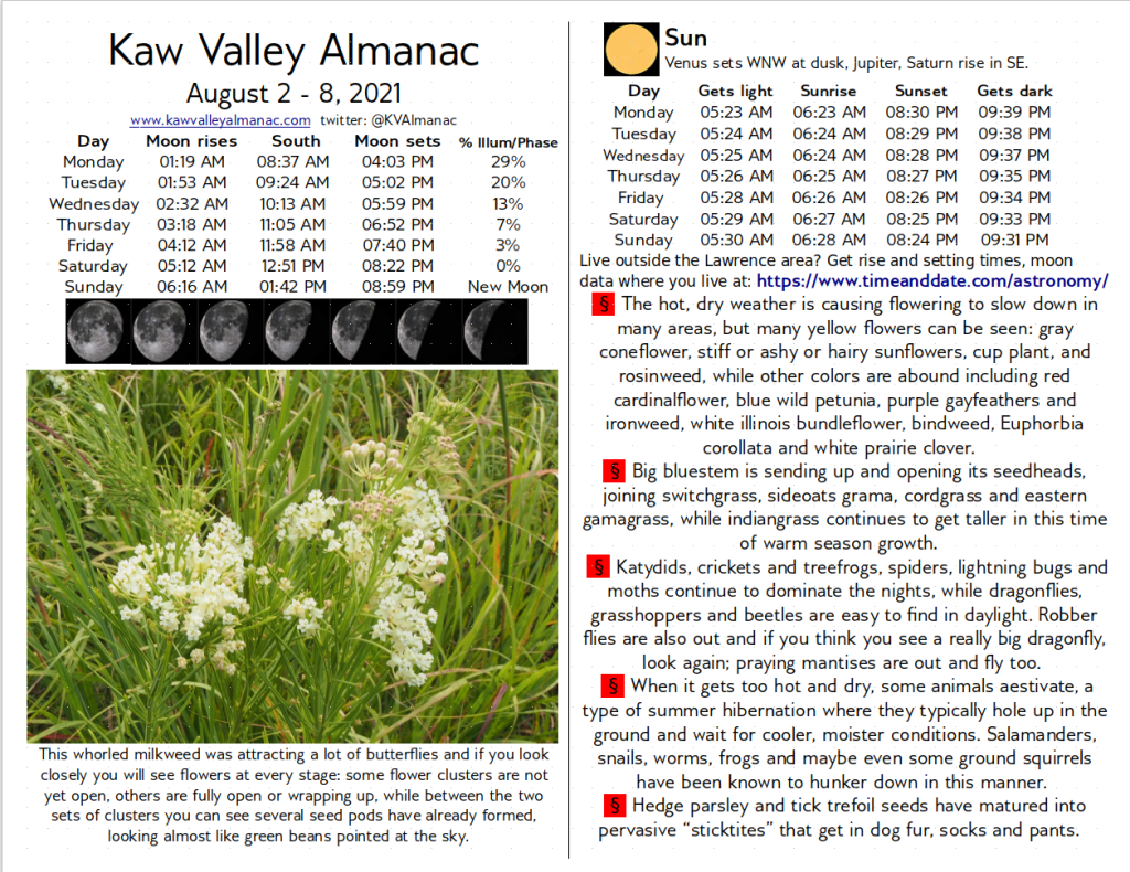 August 30 – September 5, 2021 Kaw Valley Almanac
