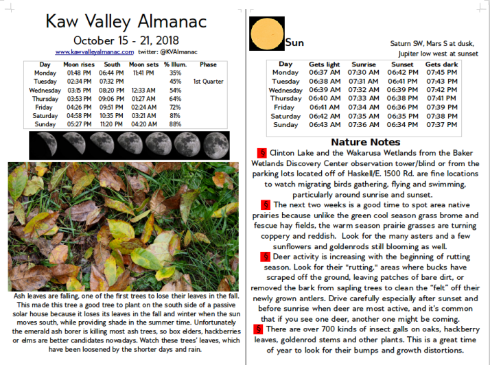 Click here to download free .pdf of October 15, 2018 Kaw Valley Almanac