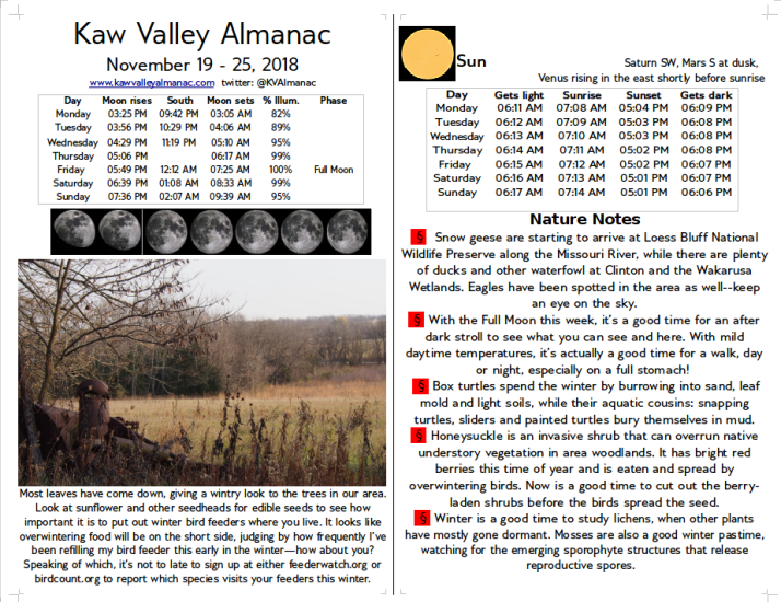 click here to download free .pdf of November 19, 2018 Kaw Valley Almanac