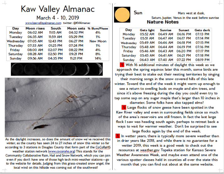 March 4 – 10, 2019 Kaw Valley Almanac