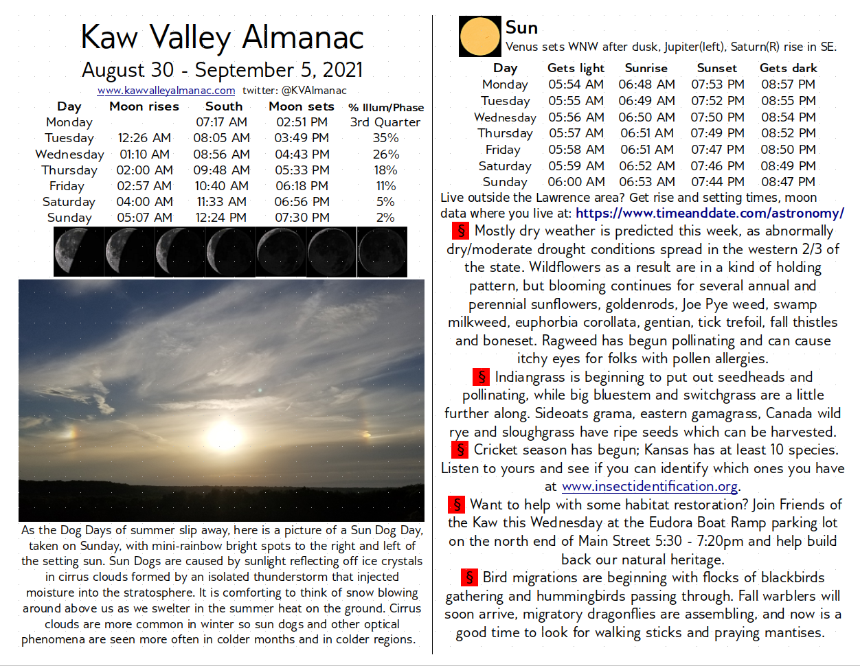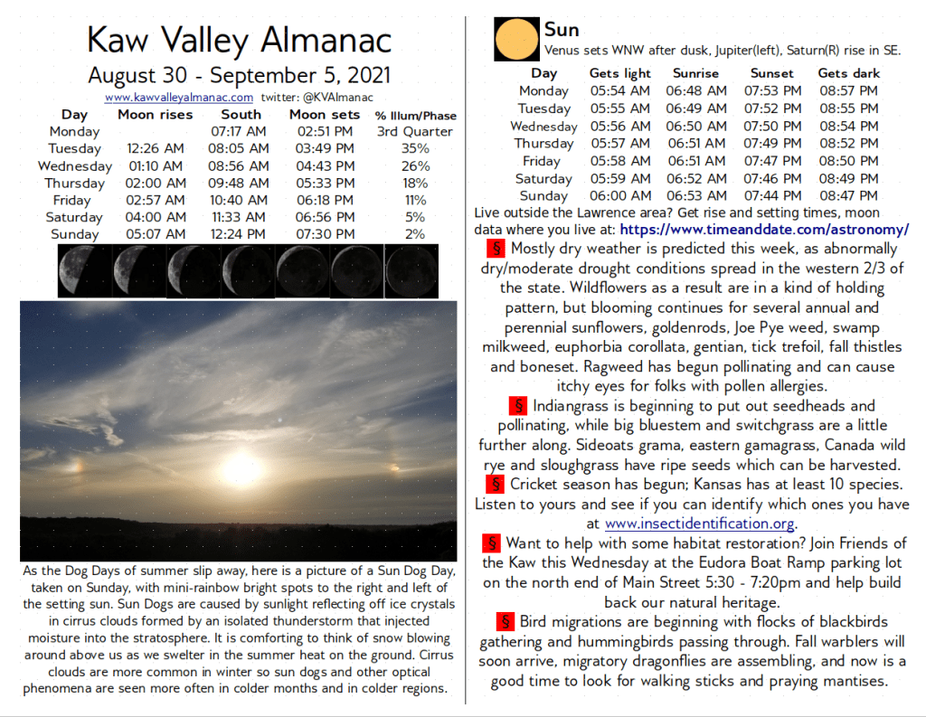 August 30 – September 5, 2021 Kaw Valley Almanac