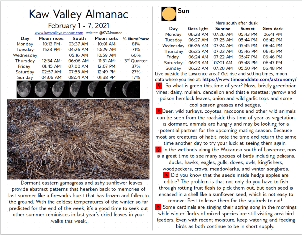 February 1 – 7, 2021 Kaw Valley Almanac